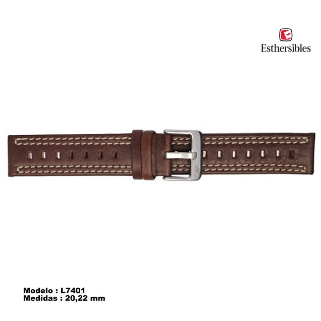 Correa de piel italiana doble costura hebilla de acero forro antialérgico tres tonos acabado brilloso