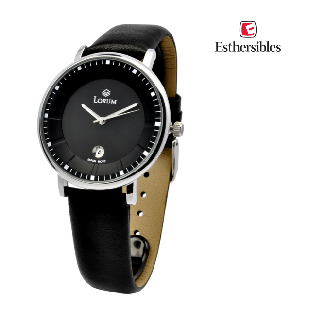 Reloj Lorum Caballero Con Indicador de Fecha al 6 Caja de Acero Correa de Piel Impermeable al Agua 3 Atmósferas