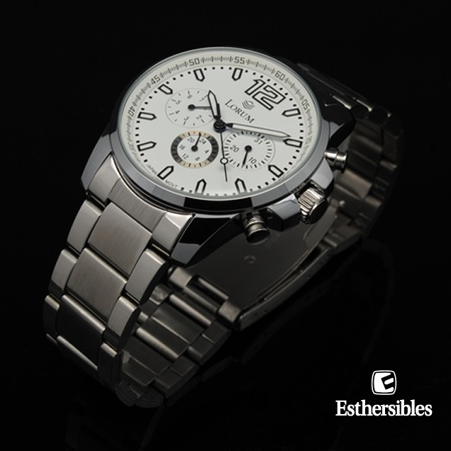 Reloj Lorum Caballero Caratula Blanca y Negra Con tres Indicadores Caja y Estencible de Acero impermeable al Agua 3 Atmósferas Modelo Cara Azul : L8568-S01 Modelo Cara Blanca : L8568-S02